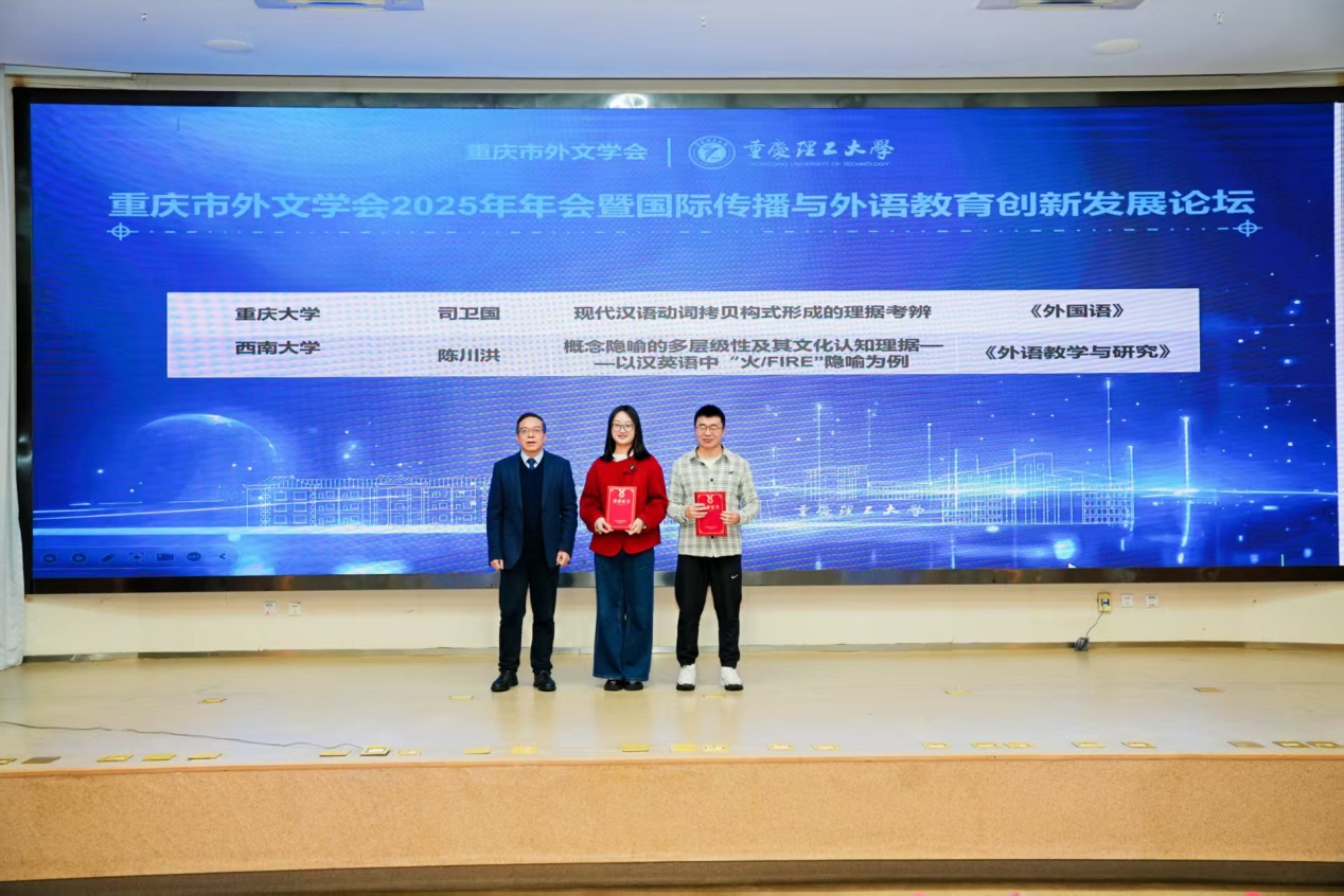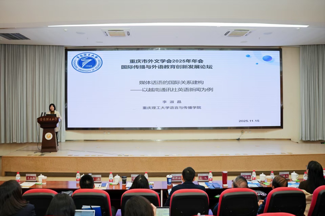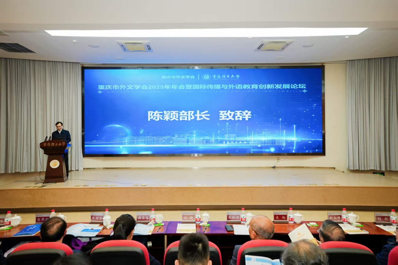 2025年11月14日至15日,重庆市外文学会2025年年会暨国际传播与外语教育创新发展论坛在重庆理工大学顺利举行。本次会议由重庆市外文学会主办,重庆理工大学语言与传播学院承办,并得到重庆市社会科学界联合会指导,重庆理工大学科学技术研究院支持,外语教学与研究出版社、上海外语教育出版社、重庆博教科技股份有限公司等单位协办。来自多所高校的外语教育专家、学会会员及企业代表等200余人齐聚一堂,围绕“国际传播与外语教育创新发展”主题,共同探讨外语教育改革与人才培养新路径。